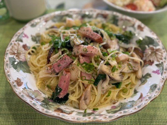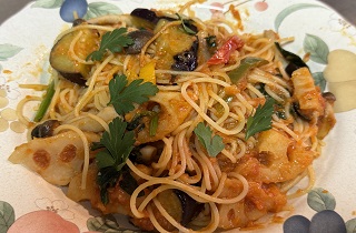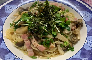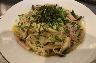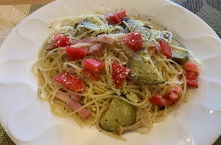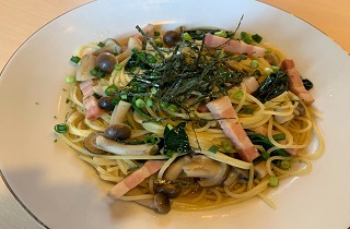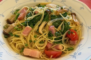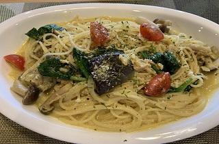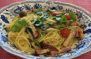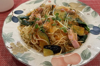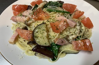 3.茄子とベーコンのオリ-ブパスタバジリコ風味