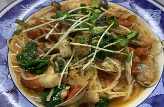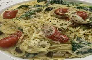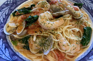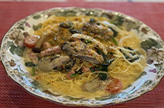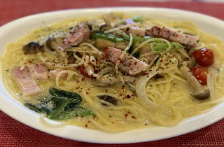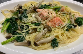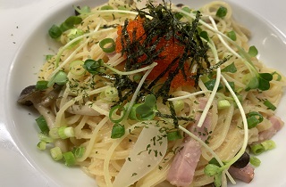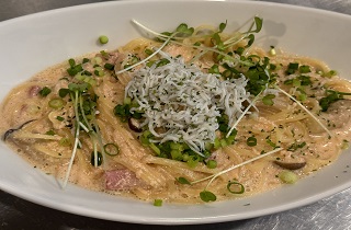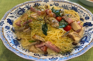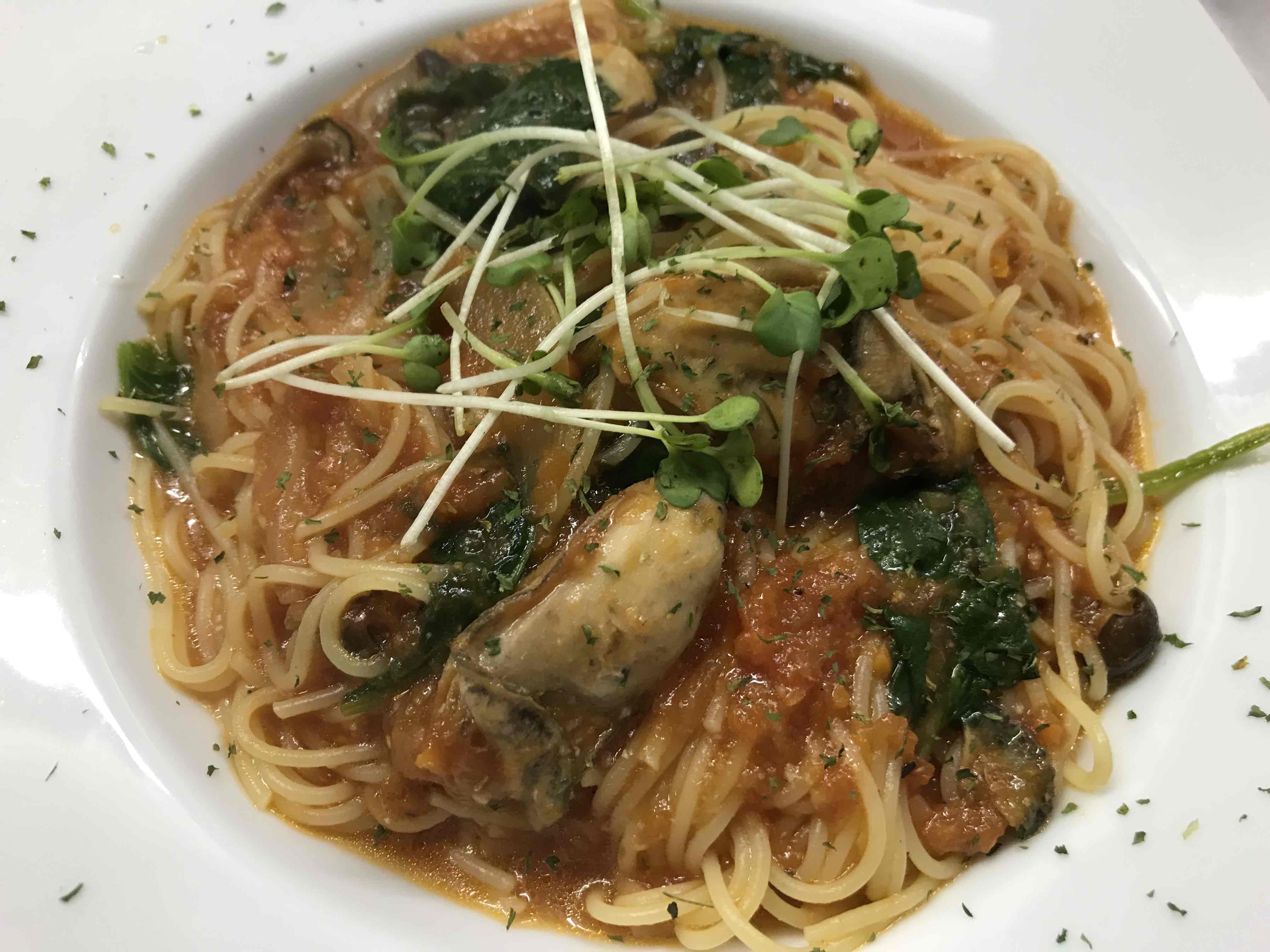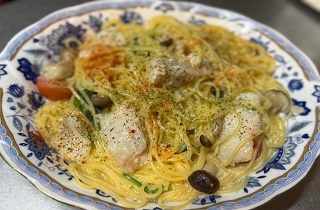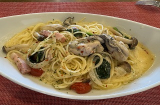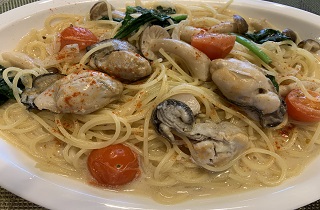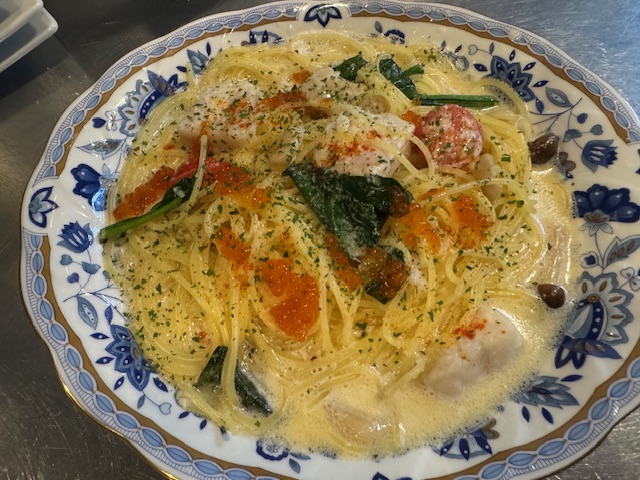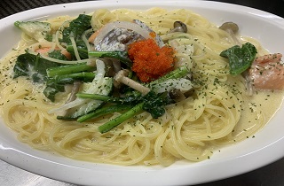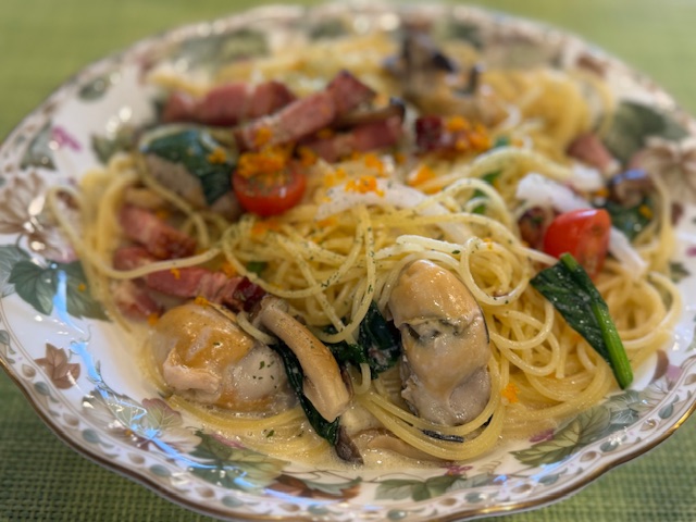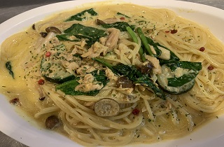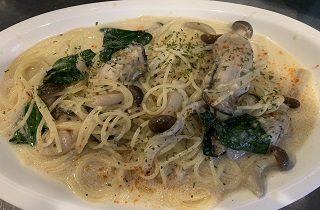 1.牡蠣とほうれん草&からすみのクリームパスタ
