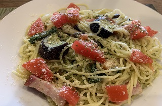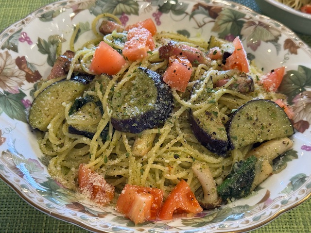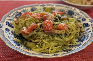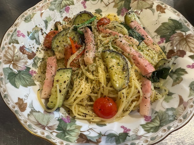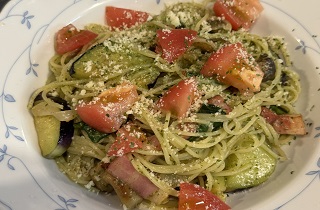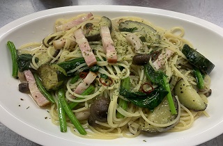 2.茄子とベーコンのジェノベーゼソースパスタ