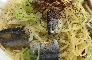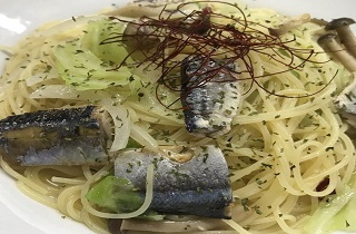 2.秋刀魚とキャベツのオリーブのオリーブパスタ