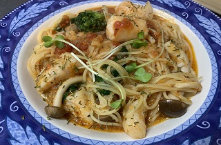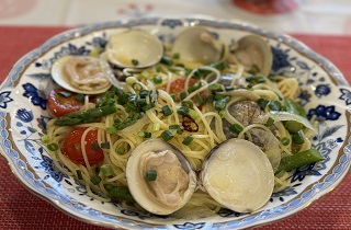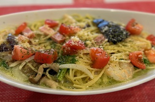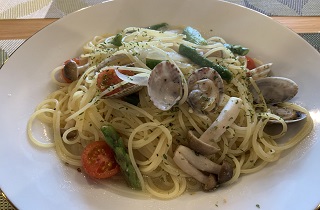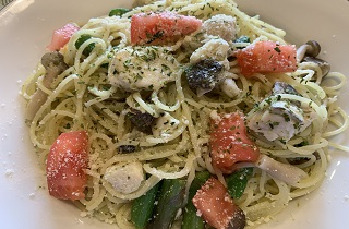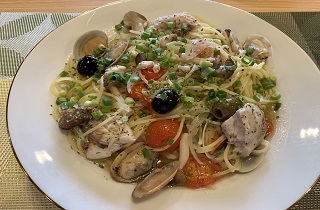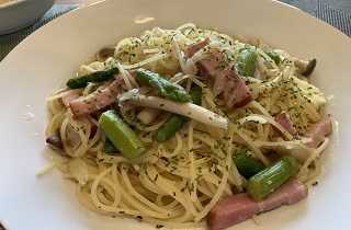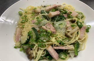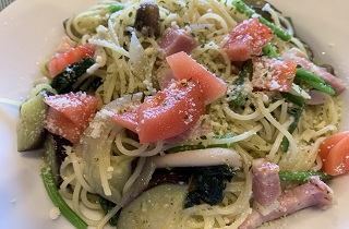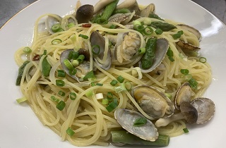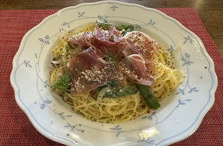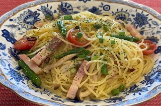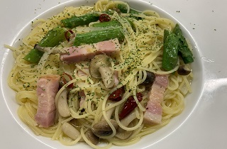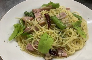 1.鰆とアスパラのジェノベーゼのオリーブパスタ
