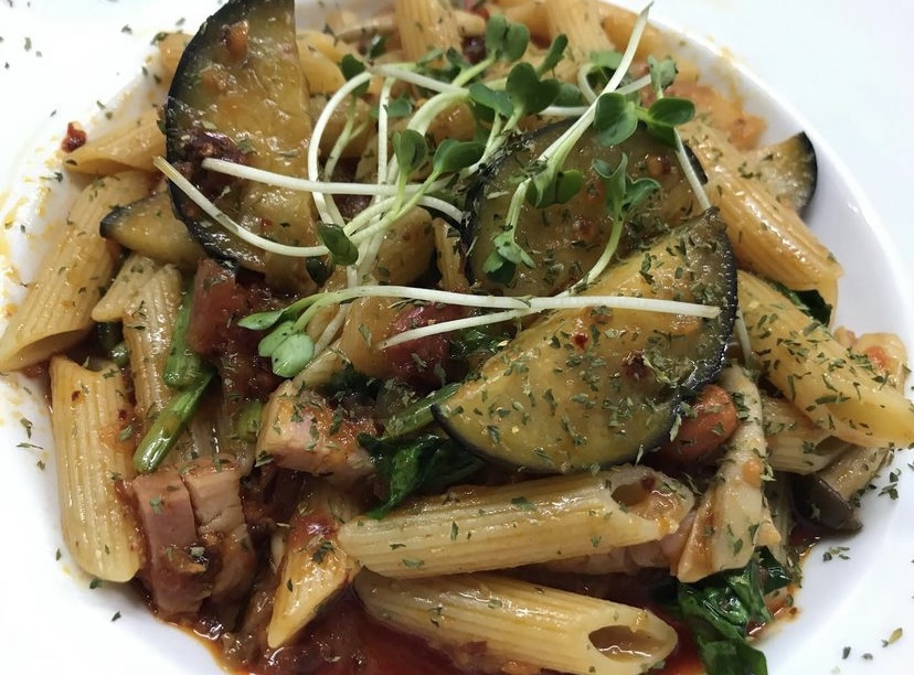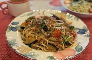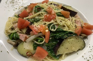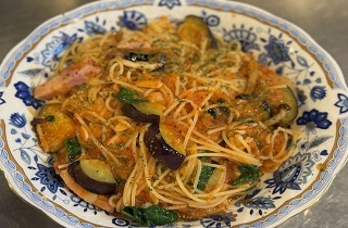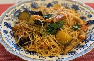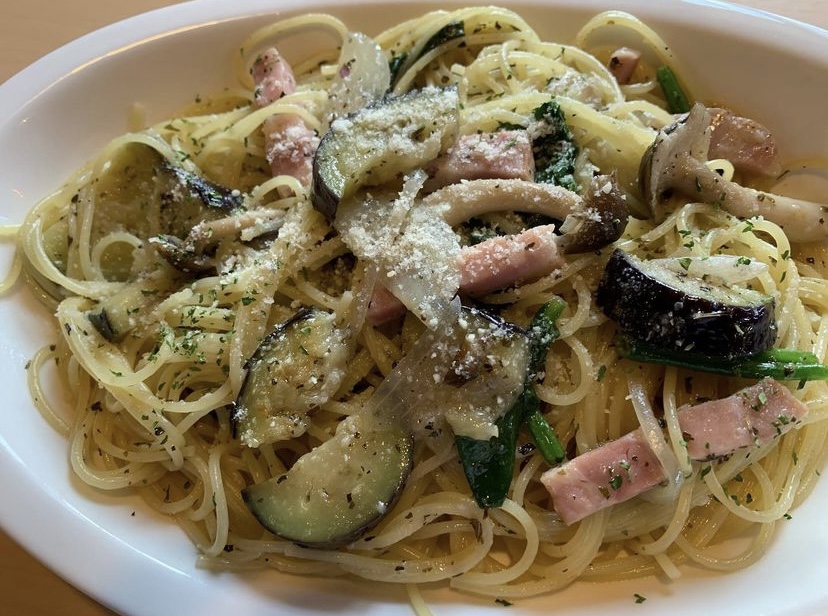 2.茄子とベーコンのオリーブパスタ(バジリコ風味)