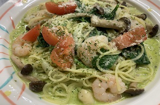 1.むき海老と小柱とほうれん草のバジルクリーム
