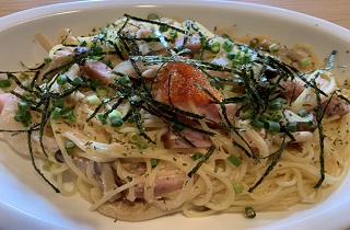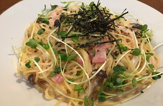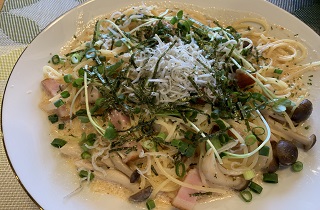 2.釜揚げしらすときのこの明太子クリームパスタ