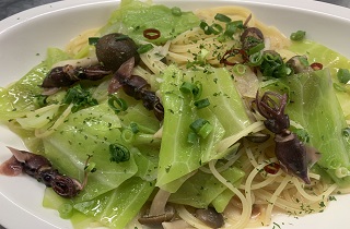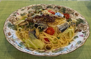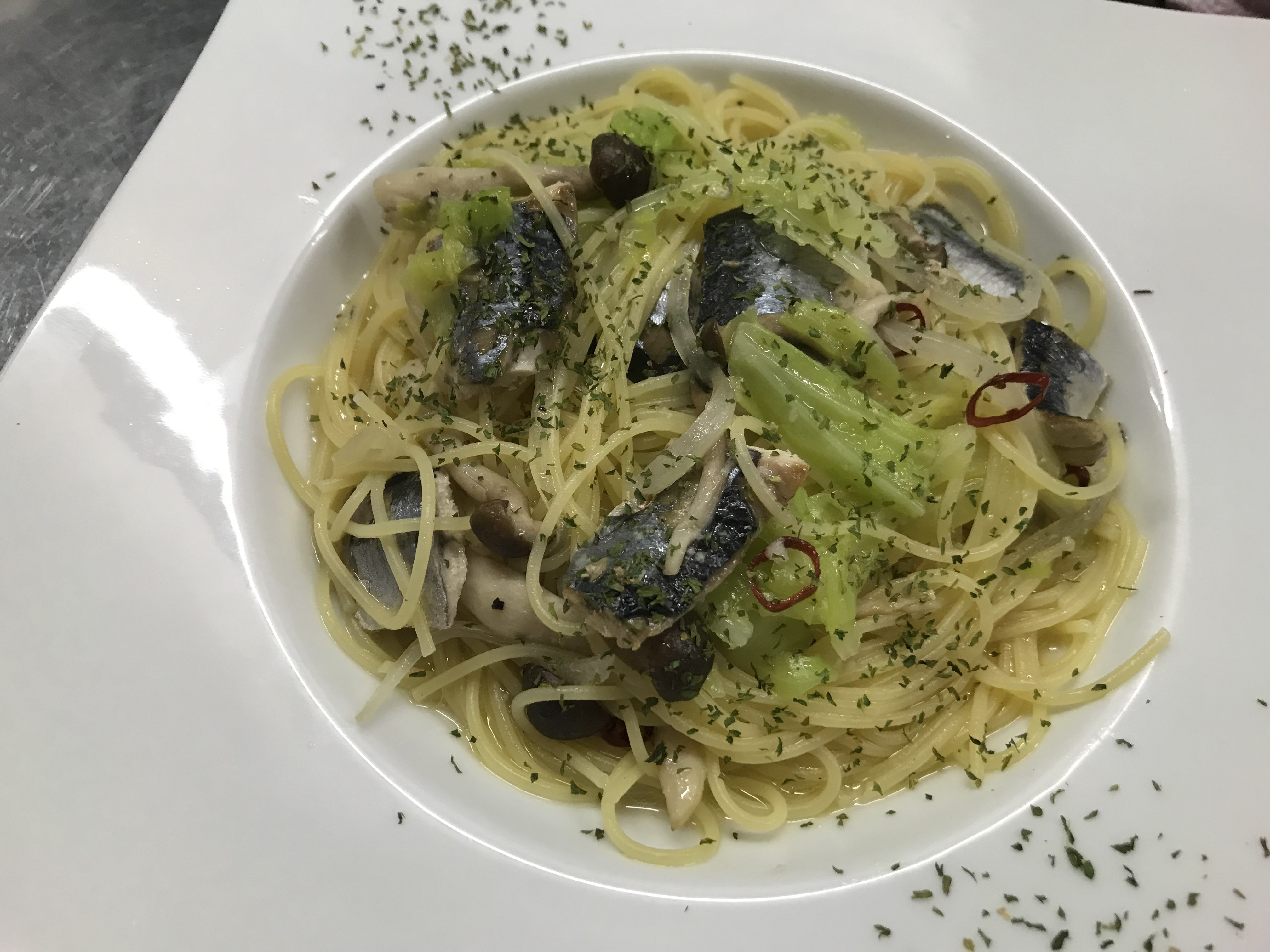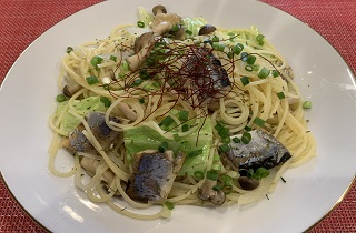 2.秋刀魚とキャベツのオリーブパスタパスタ