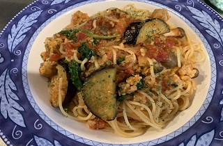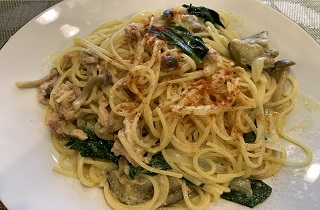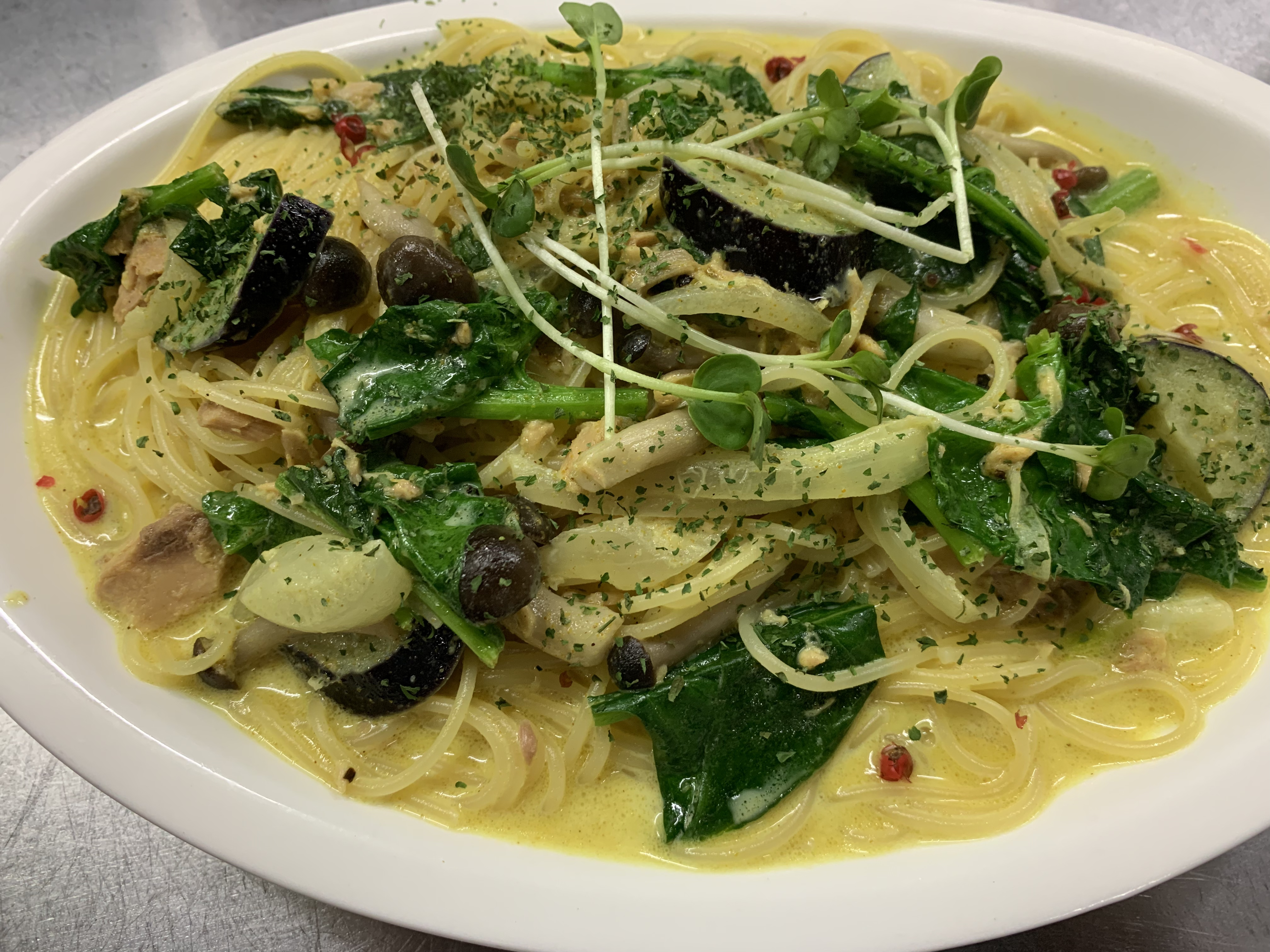 2.ツナと揚げ茄子ほうれん草のカレークリームパスタ
