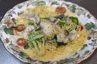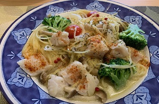 1.白身魚とブロッコリーのレモンクリームパスタ